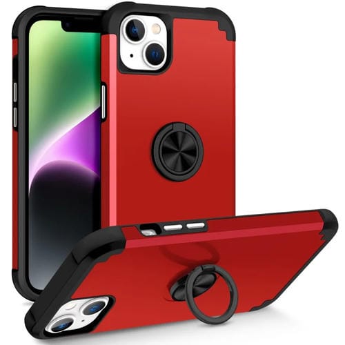 Funda para Teléfono iPhone 14 L2 Magnética con Soporte de Anillo Giratorio (Rojo)