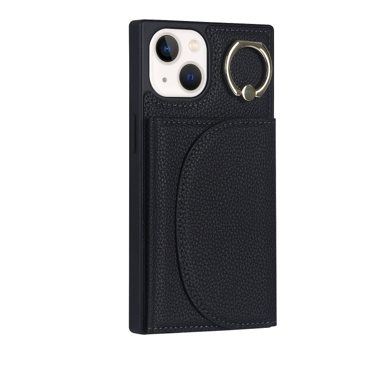 Funda para iPhone 14 Litchi Texture Card Bag Phone Case (Negro)