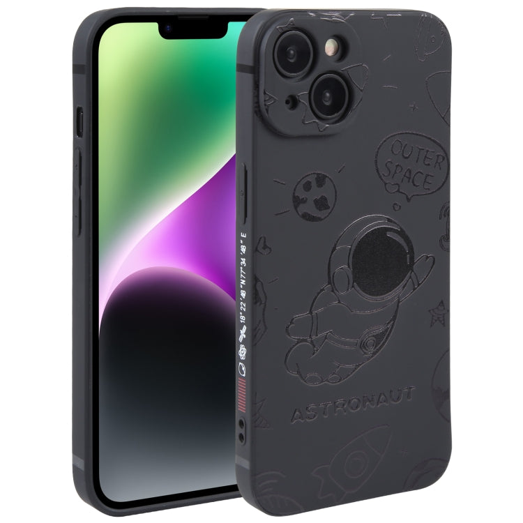 For iPhone 14 Astronaut Pattern Silicone Straight Edge Phone Case (Flying Astronaut-Black)