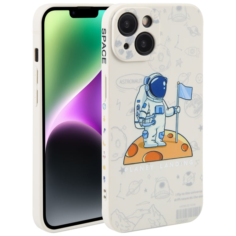For iPhone 14 Astronaut Pattern Silicone Straight Edge Phone Case (Planet Landing-White)