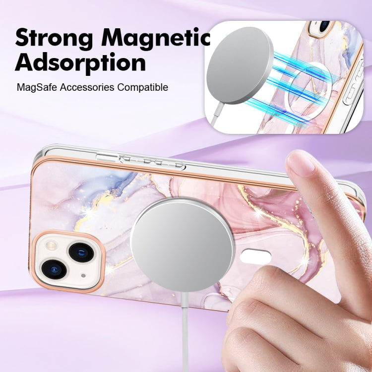 Funda para iPhone 14 Imd Magsafe TPU Doble Cara Patrón de Mármol (Oro Rosa)