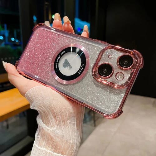 Estuche para Teléfono Magsafe iPhone 14 Plus 6D con Armadura de Brillo Degradado y Galvanoplastia (Rosa)