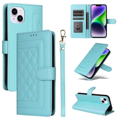 Estuche para teléfono iPhone 14 Plus con tapa de cuero y entramado de diamantes (Verde Menta)