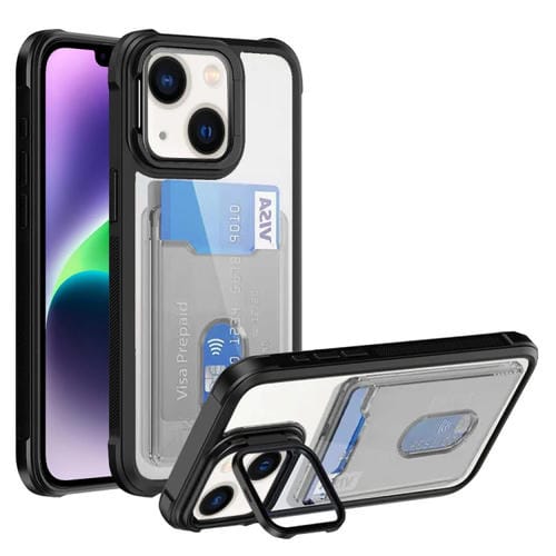 Estuche para Teléfono TPU Híbrido Acrílico para iPhone 14 Plus con Soporte para Tarjeta (Negro)