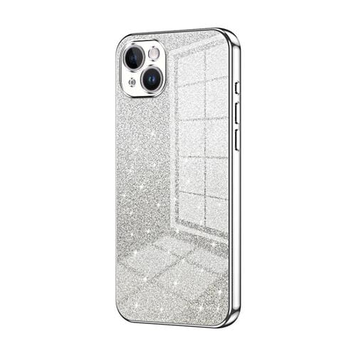 Estuche para Teléfono iPhone 14 Plus Galvanizado con Polvo de Brillo Degradado (Plateado)