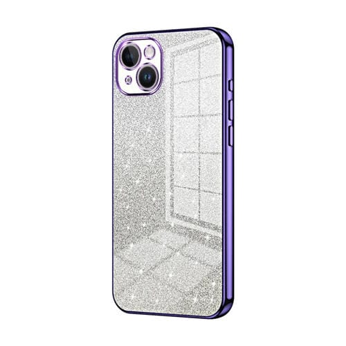 Estuche para Teléfono iPhone 14 Plus Galvanizado con Polvo de Brillo Degradado (Púrpura)