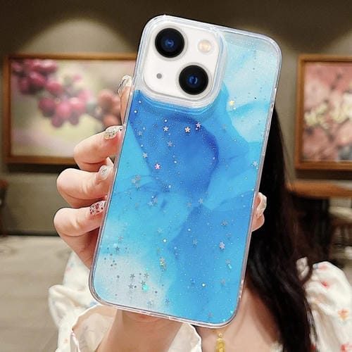 Funda para Teléfono TPU iPhone 14 Plus Purpurina Manchada de Tinta (Azul)