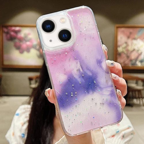 Funda para Teléfono TPU iPhone 14 Plus con Purpurina Manchada de Tinta (Púrpura)