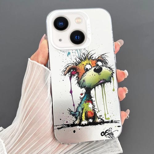 Funda para Teléfono iPhone 14 Plus Imd Animal Graffiti TPU + PC Doble Cara (Perro Naranja Verde Derretido)