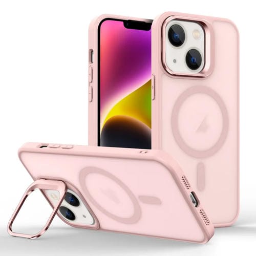 Estuche para Teléfono iPhone 14 Plus Magsafe Skin Feel con Soporte para Lentes (Rosa)