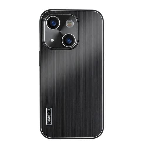 Caja de teléfono híbrida a prueba de golpes para iPhone 14 Plus de aleación de aluminio cepillada (Negro)