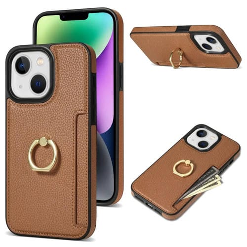 Funda Trasera para iPhone 14 Plus Ring Card Litchi Cuero (Marrón)
