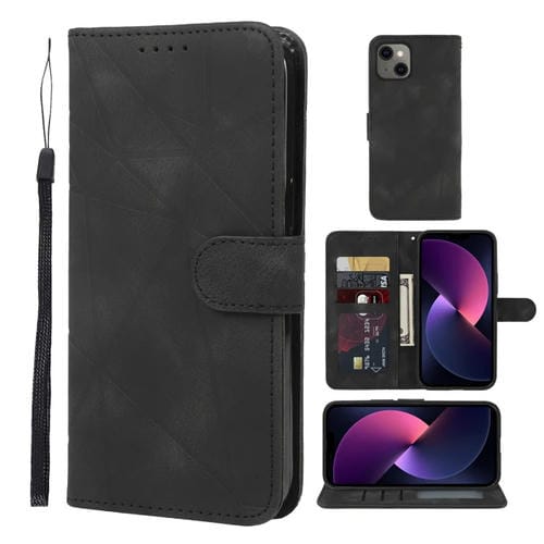 Funda para iPhone 14 Plus Skin Feel Cuero con Líneas Geométricas (Negro)