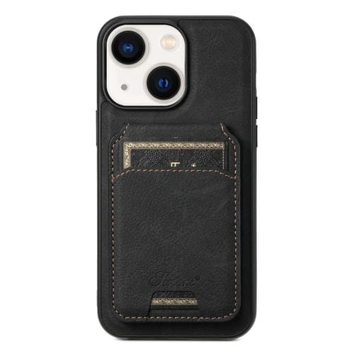 Funda para Teléfono Suteni H16 para iPhone 14 Plus con Billetera Desmontable de Cuero con Textura Litchi (Negro)