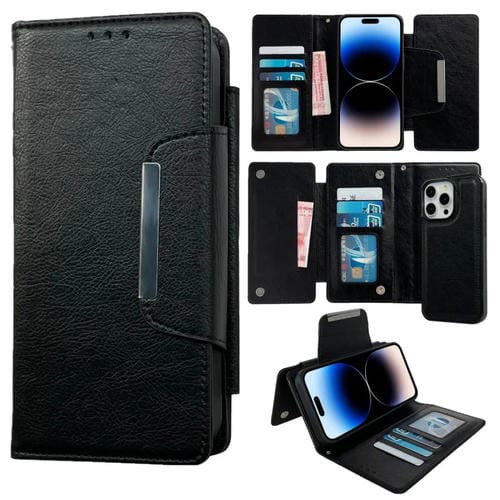 For iPhone 14 Pro Leather Phone Case Multifunctional Wallet Case for 7 Cards (Black)
