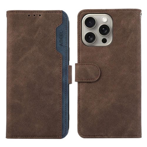Funda de Cuero Abeel para iPhone 14 Pro Max Color Block Magnética Rfid (Marrón-Azul)