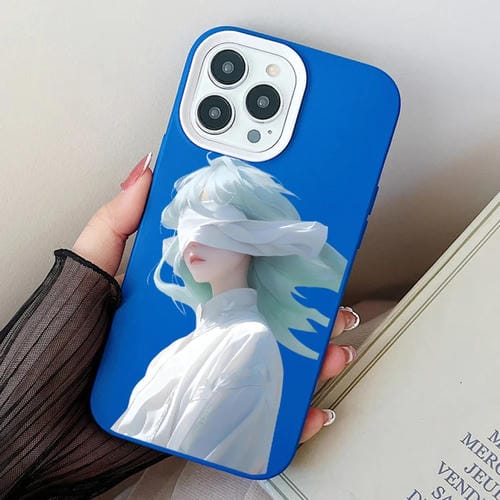 Funda híbrida para teléfono iPhone 14 Pro Max Blindfold Girl PC TPU (Azul)