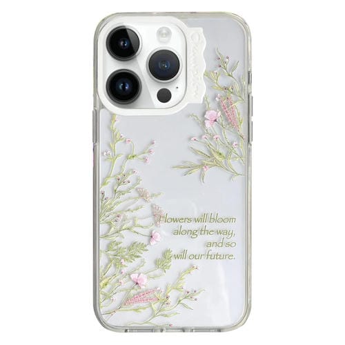 Caja de teléfono para iPhone 14 Pro Max con patrón creativo de círculo de ondas coloridas (Flor Blanca)