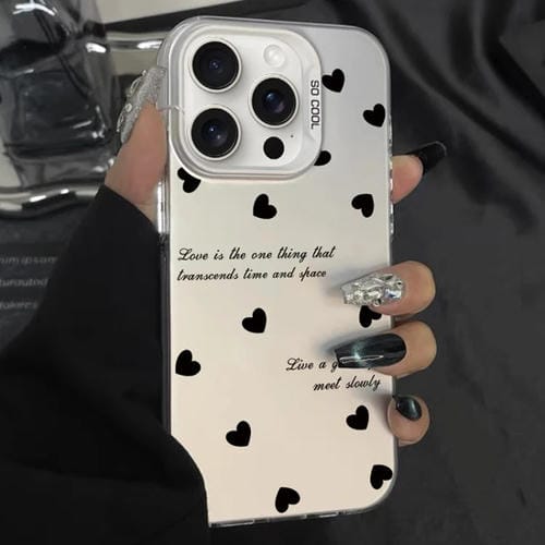 Caja de teléfono híbrida TPU para PC iPhone 14 Pro Max con pintura plateada (Corazones de Amor Blancos)