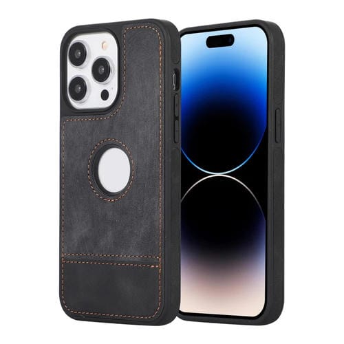 Funda para iPhone 14 Pro Max Empalme Costura Caja de Teléfono de PU con Recorte (Negro)