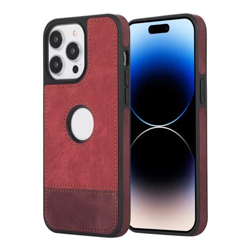 Funda para iPhone 14 Pro Max Empalme Costura Caja de Teléfono de PU con Recorte Hueco (Rojo)