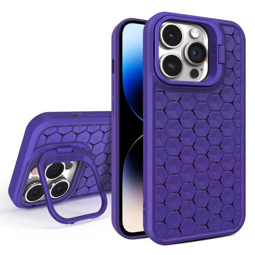 Estuche Magnético para Teléfono iPhone 14 Pro Max con Soporte para Lente Radiante Honeycomb (Púrpura)
