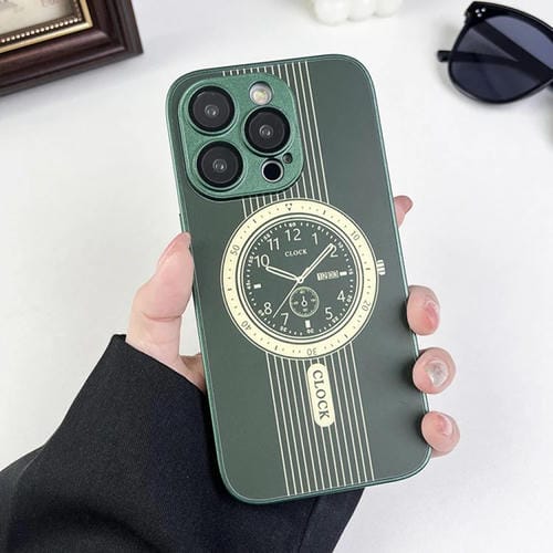 Estuche para Teléfono iPhone 14 Pro Max con Protección de Lente Magnética y Patrón de Reloj (Verde)