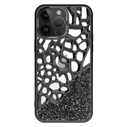 Estuche para teléfono TPU Galvanizado iPhone 14 Pro Max con Disipación de Calor Hueca Estilo Diamante (Negro)
