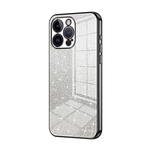 Estuche para teléfono iPhone 14 Pro Max galvanizado con purpurina en polvo degradado (Negro)