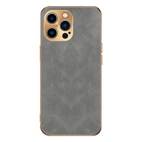 Funda para Teléfono iPhone 14 Pro Max Piel de Cordero Galvanizada (Gris)