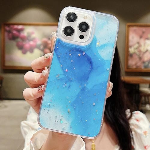 Funda para Teléfono TPU iPhone 14 Pro Max con Purpurina Manchada de Tinta (Azul)