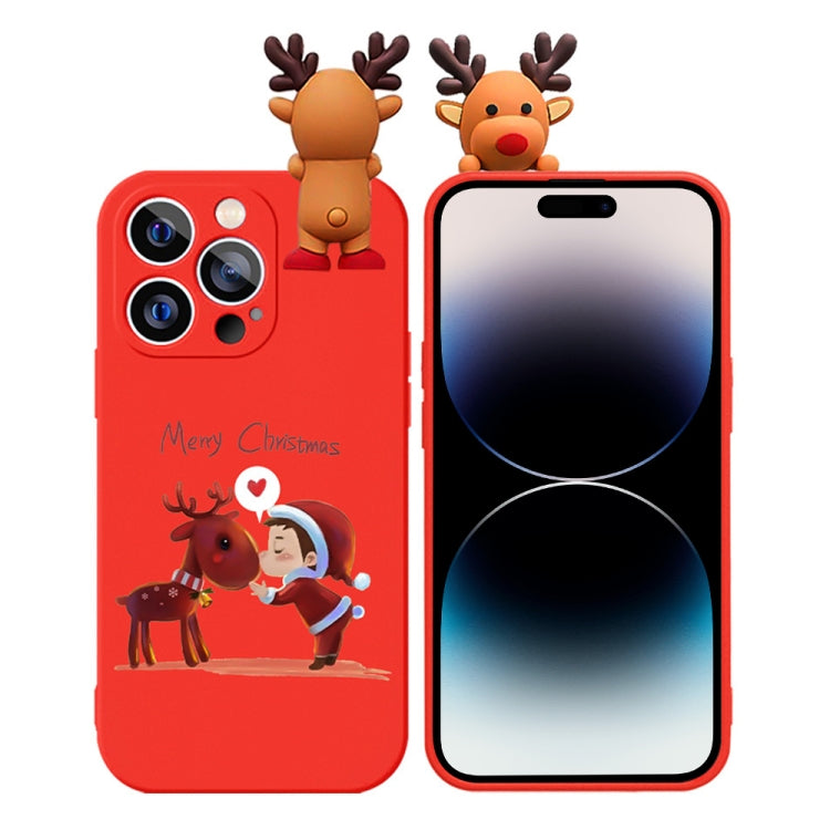 Funda para Teléfono TPU Suave iPhone 14 Pro Max Muñeco Relieve Ciervo Dibujo Coloreado