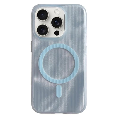 Funda para Teléfono iPhone 14 Pro Max Magsafe Magnética Sensación de Piel a Rayas (Azul)