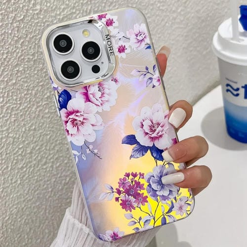 Funda para teléfono TPU iPhone 14 Pro Max Galvanoplastia Láser Flor Textura (Peony Ah11)