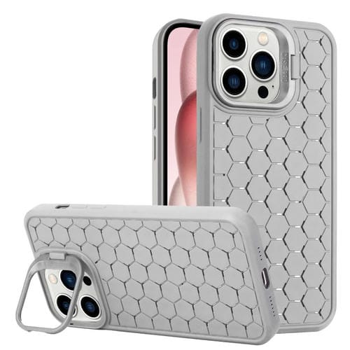 Funda para teléfono TPU iPhone 14 Pro Max Honeycomb Radiating Lens Holder (Gris)