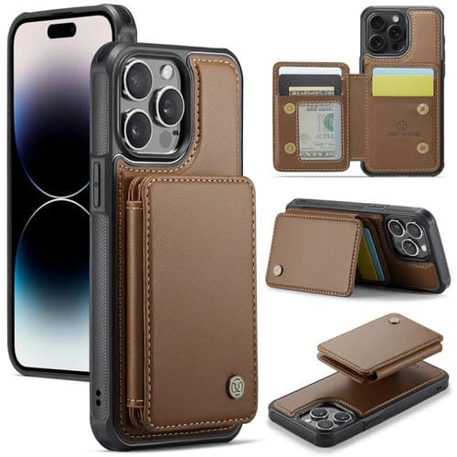 Estuche para teléfono Jeehood J05 para iPhone 14 Pro Max Cuero Rfid Magnético Empresarial (Marrón)
