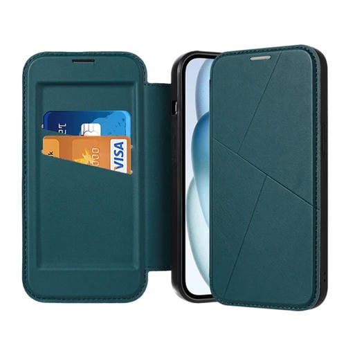 Funda para Teléfono iPhone 14 Pro Max Magnetic Armor Series Cuero con Ranuras para Tarjetas Rfid (Verde)