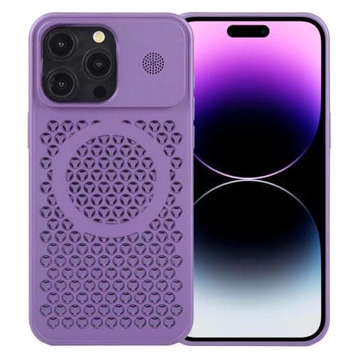Estuche para Teléfono iPhone 14 Pro Max Pure Color Honeycomb Aromaterapia Magsafe (Púrpura)