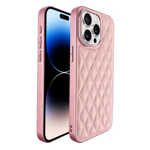 Estuche para teléfono iPhone 14 Pro Plaid Series 9D Galvanizado (Rosa)
