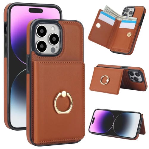 Estuche para Teléfono iPhone 14 Pro Rfid Tarjeta Antirrobo con Soporte para Anillo (Marrón)