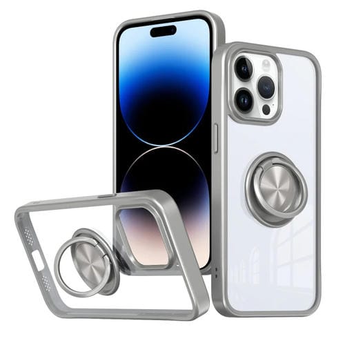 Funda para Teléfono iPhone 14 Pro Ring Holder PC Hybrid TPU (Gris)