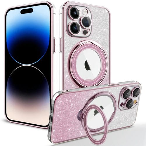 For iPhone 14 Pro Rotation MagSafe Holder Gradient Glitter TPU Phone Case (Pink)