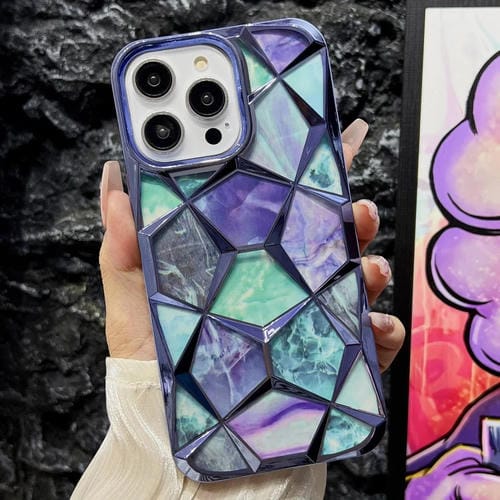 Estuche para Teléfono iPhone 14 Pro Water Cube TPU con Galvanoplastia de Mármol (Azul)