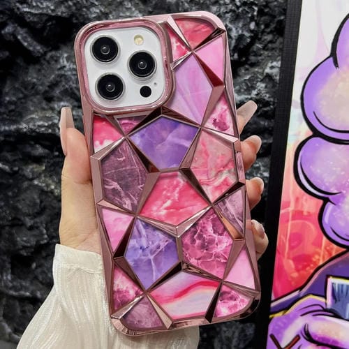 Estuche para teléfono iPhone 14 Pro TPU con Galvanoplastia de Mármol Water Cube (Rosa)