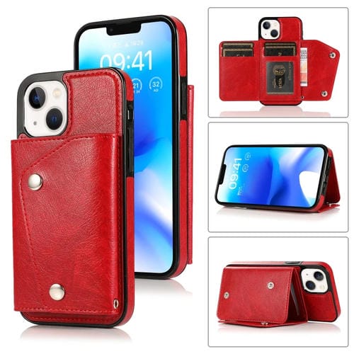 Funda para Teléfono iPhone 14 Ranuras para Tarjetas PU + TPU (Rojo)