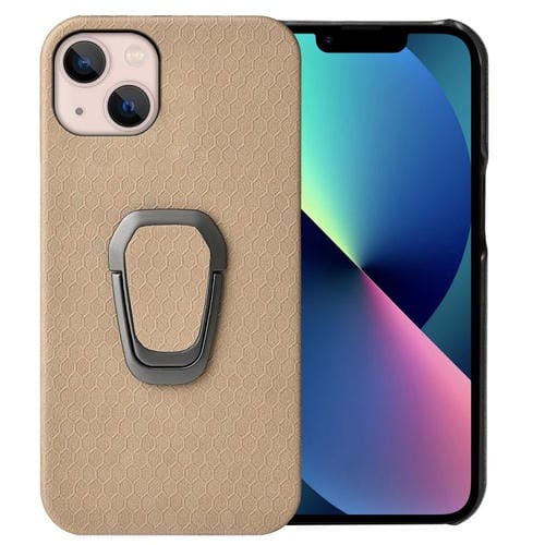 Funda para iPhone 14 Ring Holder Honeycomb PU Phone Case (Café)
