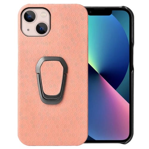 Funda para iPhone 14 Ring Holder Honeycomb PU Phone Case (Rosa)