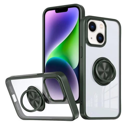 Funda para Teléfono iPhone 14 Ring Holder PC Hybrid TPU (Verde)