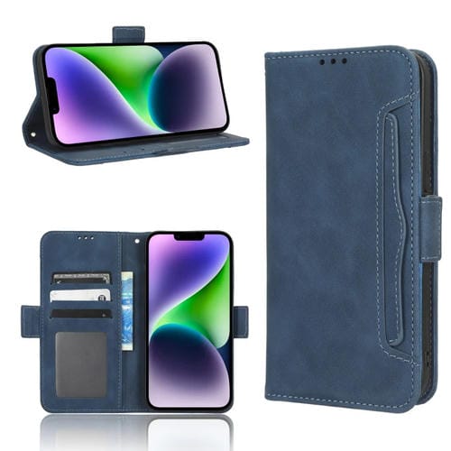 Funda para Teléfono iPhone 14 Skin Feel Becerro Textura Ranuras para Tarjetas (Azul)