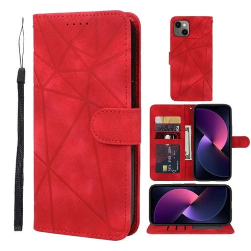 Funda para Teléfono iPhone 14 Skin Feel Cuero Líneas Geométricas (Rojo)